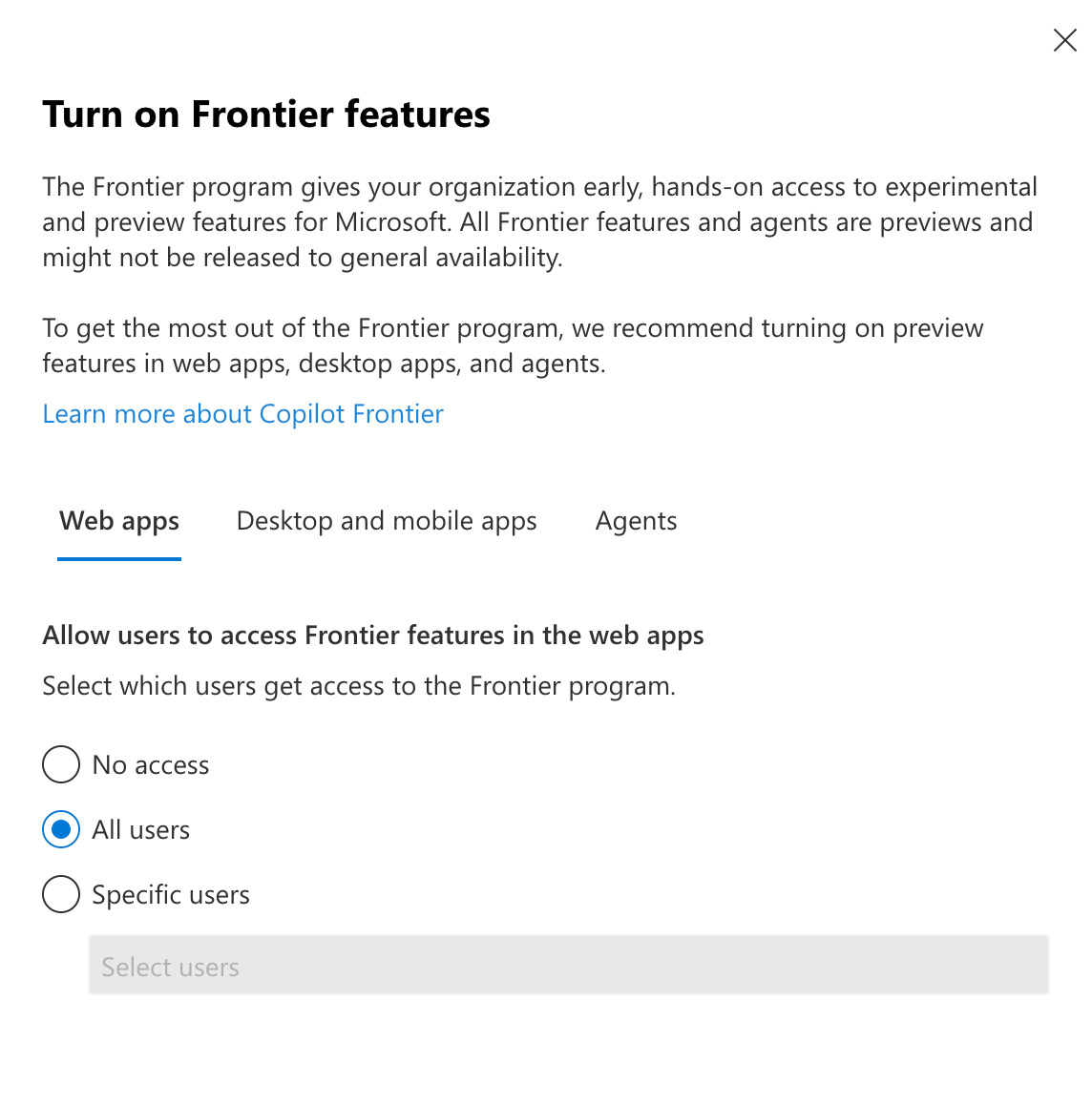 Enable Copilot's Frontier Features