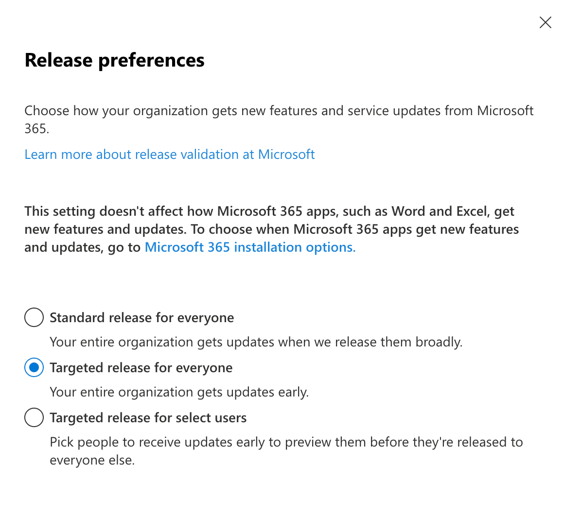 - Configure Microsoft 365 Release Preferences. The AI tools work alongside Microsoft's ecosystem releases, so to make sure your environment can use the latest features, move to a targeted release group. Without this, you could be waiting months longer for features you're already paying for.